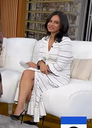 Dr. Tara Narula on Good Morning America on ABC was spotted wearing this white striped knit maxi dress on Good Morning America on Nov 07 2025's episode. Tara's Dress is the Striped Knit Maxi Dress in ecru by Sandro.