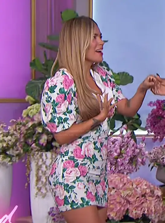 on The Drew Barrymore Show on CBS was spotted wearing this floral print mini dress on The Drew Barrymore Show on Oct 24 2025's episode. 's Dress is the Sable Mini Polo Dress by Rowen Rose.