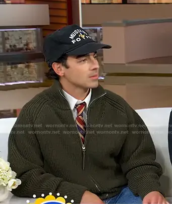 on Good Morning America on ABC was spotted wearing this green ribbed knit jacket on Good Morning America on Nov 10 2025's episode. 's Jacket is the The Merino Zipped Cardigan Jacket by Jacquemus.