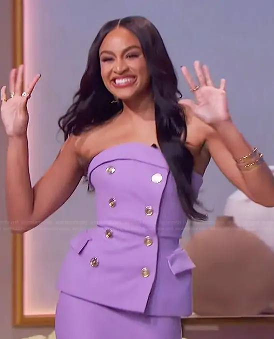 on The Jennifer Hudson Show on FOX was spotted wearing this purple double breasted vest on The Jennifer Hudson Show on Nov 01 2025's episode. 's Vest is the 2025 Summer Collection by Sergio Hudson.