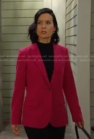 Theory Classic Staple Blazer in Deep Rose worn by Amy Choi (Shi Ne Nielson) on Days of our Lives