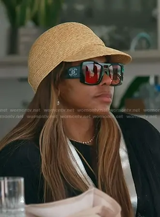 Mary Cosby on The Real Housewives of Salt Lake City on Bravo was spotted wearing this black frame sunglasses on The Real Housewives of Salt Lake City on episode 'Unicorn Overboard' (6x09) in Nov 2025. Mary's Sunglasses is the Pilot Sunglasses by Chanel . Mary's Hat is the 1986-1988 Straw Cap by Chanel.
