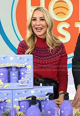 Chassie Post on Today on NBC was spotted wearing this red fair isle sweater on Today on Nov 12 2025's episode. Chassie's Sweater is the Mock-Neck Fair Isle Sweater in Red by Style & Co.