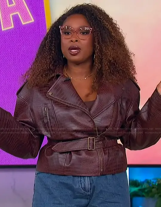 Jennifer Hudson on The Jennifer Hudson Show on FOX was spotted wearing this croc leather belted jacket on The Jennifer Hudson Show on Nov 07 2025's episode. Jennifer's Jacket is the Lilou Croc-Embossed Faux Leather Jacket by Ronny Kobo.