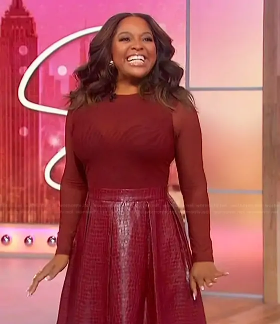 Sherri Shepherd on Sherri on FOX was spotted wearing this maroon mixed media dress on Sherri on Nov 13 2025's episode. Sherri's Dress is the Chara Croc Embossed Pleated Dress by Alice + Olivia.