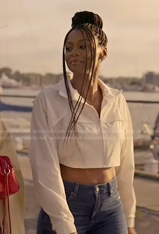Jax Stewart (played by Emayatzy Corinealdi) on Reasonable Doubt on Hulu was spotted wearing this white cropped zip jacket on Reasonable Doubt on episode 'On to the Next One' (3x10) in Nov 2025. Jax's Jacket is the Cropped Playmaker Jacket in Ivory by Alo Yoga . Jax's Shoes is the Gender Inclusive Samba OG Sneaker by Adidas.