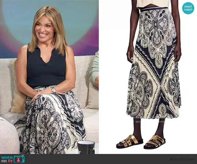 Sandro Paisley Printed Midi Skirt worn by Kit Hoover on Access Hollywood
