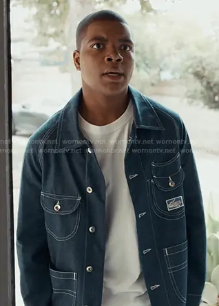 Harry Grant (played by Elijah M. Cooper) on 9-1-1 on ABC was spotted wearing this denim jacket with white stitching on 9-1-1 on episode 'Family History' (9x06) in Nov 2025. Harry's Jacket is the Wonky-Wear Circuit Indigo-Dyed Organic Denim Jacket by Story Mfg..