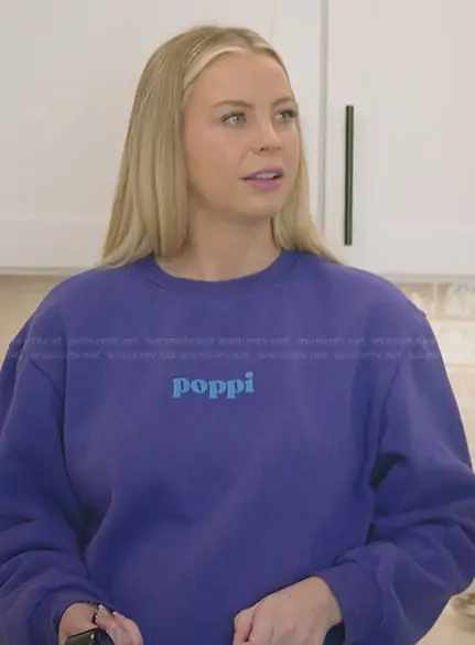 Mayci Neeley on The Secret Lives of Mormon Wives on Hulu was spotted wearing this blue sweatshirt on The Secret Lives of Mormon Wives on episode 'The Book of Fidelity' (3x02) in Nov 2025. Mayci's Sweater is the Soda Crewneck sweatshirt by Poppi.