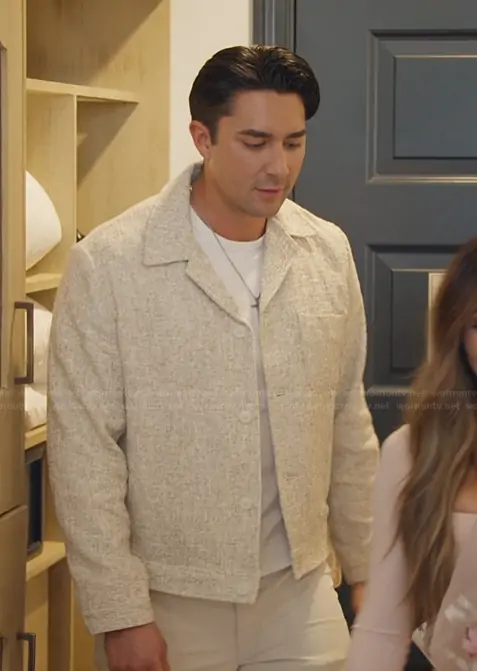 Marciano Brunette on The Secret Lives of Mormon Wives on Hulu was spotted wearing this jacket on The Secret Lives of Mormon Wives on episode 'The Book of Demi' (3x03) in Nov 2025. 's Jacket is the Regular Fit Woven Jacket by H&M.