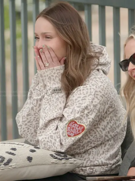 Mikayla Matthews on The Secret Lives of Mormon Wives on Hulu was spotted wearing this leopard print hoodie on The Secret Lives of Mormon Wives on episode 'The Book of Demi' (3x03) in Nov 2025. Mikayla's Sweater is the Heart Club Hoodie by Five the Label.