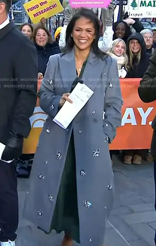 Simkhai Gianni Embellished Coat in Heather Grey worn by Laura Jarrett on Today