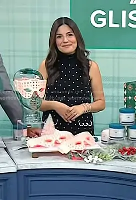 Adrianna Barrionuevo Brach on Today on NBC was spotted wearing this black dot turleneck dress on Today on Nov 17 2025's episode. Adrianna's Dress is the Blossom Dress by Rachel Antonoff.