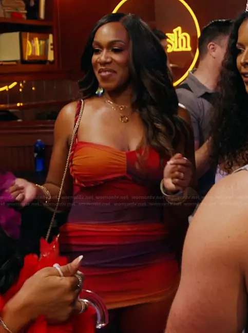Tia Glover on The Real Housewives of Potomac on Bravo was spotted wearing this ombre mini dress on The Real Housewives of Potomac on episode 'Guess Who's Back?' (10x07) in Nov 2025. Tia's Dress is the New Horizons Ombre Mesh Mini Dress by Fashion Nova.