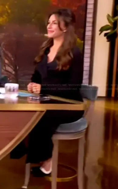 Alyssa Farah Griffin on The View on ABC was spotted wearing this black metallic v-neck dress on The View on Nov 14 2025's episode. Alyssa's Dress is the x Henry Zankov Castella Shimmer Knit Column Maxi Dress by Diane von Furstenberg.