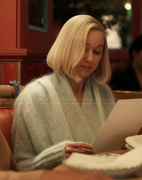 Liberty Ronson (played by Naomi Watts) on Alls Fair on Hulu was spotted wearing this wrap sweater on Alls Fair on episode 'This Is Me Trying' (1x05) in Nov 2025. Liberty's Sweater is the V-neck jumper by Genny.