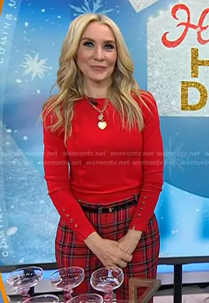 Chassie Post on Today on NBC was spotted wearing this red sweater and check pants on Today on Nov 18 2025's episode. Chassie's Sweater is the Basic Knit Sweater in Bright Red by Zara . Chassie's Pants is the Cameron Pants by J. Crew.