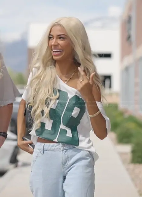 Layla Taylor on The Secret Lives of Mormon Wives on Hulu was spotted wearing this 99 print jersey on The Secret Lives of Mormon Wives on episode 'The Book of Resurrection' (3x05) in Nov 2025.