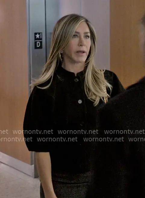 Alex Levy (played by Jennifer Aniston) on The Morning Show on Apple TV was spotted wearing this black puff-sleeve jacket on The Morning Show on episode 'Knowing Violation' (4x10) in Nov 2025. Alex's Jacket is the Jacket with Puff Sleeves by Dior.