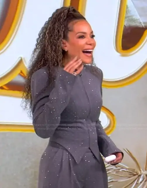 Sunny Hostin on The View on ABC was spotted wearing this gray crystal embellished blazer and pants on The View on Nov 19 2025's episode. Sunny's Jacket is the Embellished Denim Tailored Zip Jacket by LaQuan Smith . Sunny's Pants is the Polka Dot Relaxed-Fit Wide-Leg Trousers by LaQuan Smith.