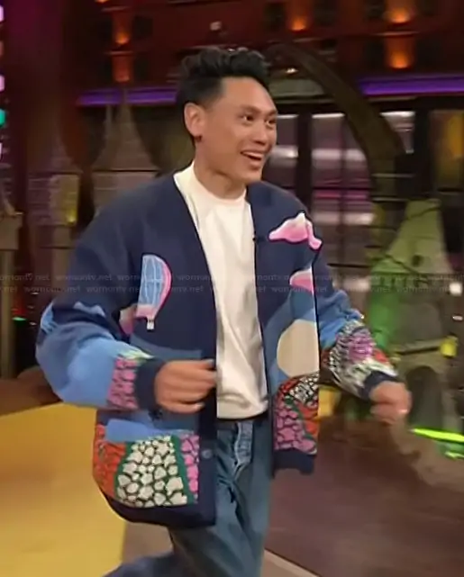 Roots Roots X Wicked Dusk Cardigan worn by Jon M. Chu on The Kelly Clarkson Show