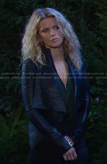 Guess Shayna Drape Leather Jacket worn by Catherina Greene (AnnaLynne McCord) on Days of our Lives