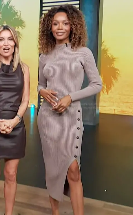 Zuri Hall on Access Hollywood on NBC was spotted wearing this gray ribbed dress on Access Hollywood on Dec 19 2025's episode. Zuri's Dress is the Soryn Long Sleeve Sweater Dress by ASTR the Label.