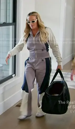 Heather Gay on The Real Housewives of Salt Lake City on Bravo was spotted wearing this grey colorblcok track jacket and patns on The Real Housewives of Salt Lake City on episode 'The Higher the Hair, the Closer to God' (6x10) in Nov 2025. Heather's Jacket is the PA Monogram Track Jacket by Palm Angels . Heather's Pants is the colour-block Track Pants by Palm Angels . Heather's Sunglasses is the Hailey Oval Sunglasses in Ivory by Gucci.