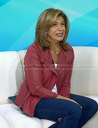 Hoda Kotb on Today on NBC was spotted wearing this red leather jacket on Today on Nov 20 2025's episode. Hoda's Jacket is the Liquid Leather™ Signature Jacket in Merlot by Clara Sunwoo.
