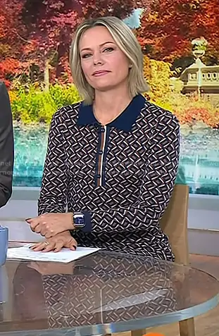 Dylan Dreyer on Today on NBC was spotted wearing this geometric print polo dress on Today on Nov 20 2025's episode. Dylan's Dress is the Milena Dress by Diane von Furstenberg.