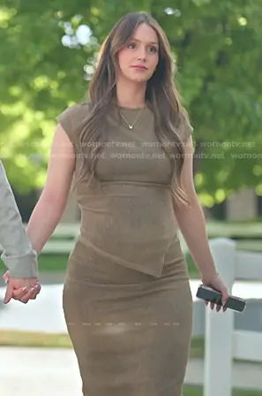 Mikayla Matthews on The Secret Lives of Mormon Wives on Hulu was spotted wearing this brown top and skirt on The Secret Lives of Mormon Wives on episode 'The Book of Enlightenment' (3x10) in Nov 2025. Mikayla's Top is the Calculated Cap Sleeve Ribbed Knit Top in Brown by Selfie Leslie . Mikayla's Skirt is the Calculated Ribbed Knit Maxi Skirt in Brown by Selfie Leslie.