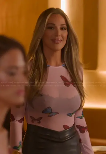 Alex Halll (played by Alex Hall) on Selling the OC on Netflix was spotted wearing this pink butterfly mesh top on Selling the OC on episode 'Last Alex Standing' (4x01) in Nov 2025. Alex's Top is the Ari Butterfly Mesh Top by Superdown.