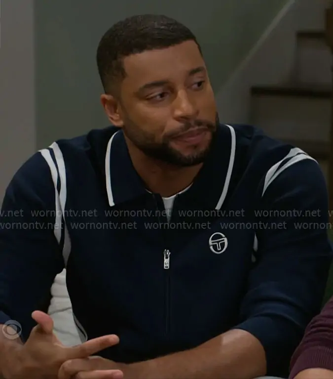 Martin Richardson (played by Brandon Claybon) on Beyond the Gates on CBS was spotted wearing this navy blue sweatshirt with stripes on Beyond the Gates on Nov 21 2025's episode. Martin's Sweatshirt is the Palla track jacket by Sergio Tacchini.