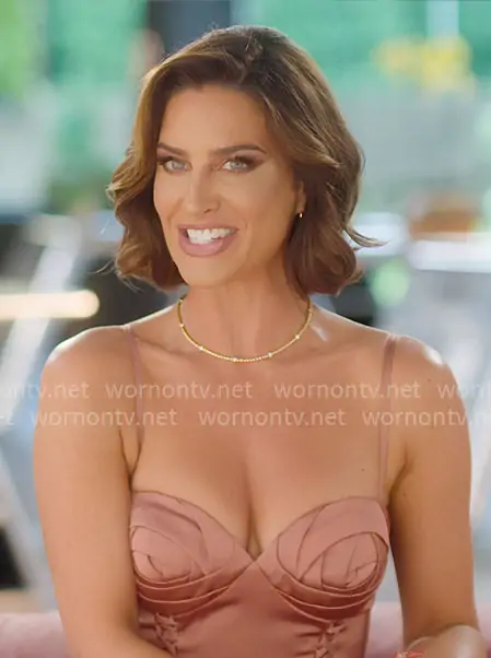 Polly Brindle (played by Polly Brindle) on Selling the OC on Netflix was spotted wearing this rose confessional dress on Selling the OC on episode 'Not the Other Woman' (4x03) in Nov 2025. Polly's Dress is the Willow Gown in Copper by Azazie.