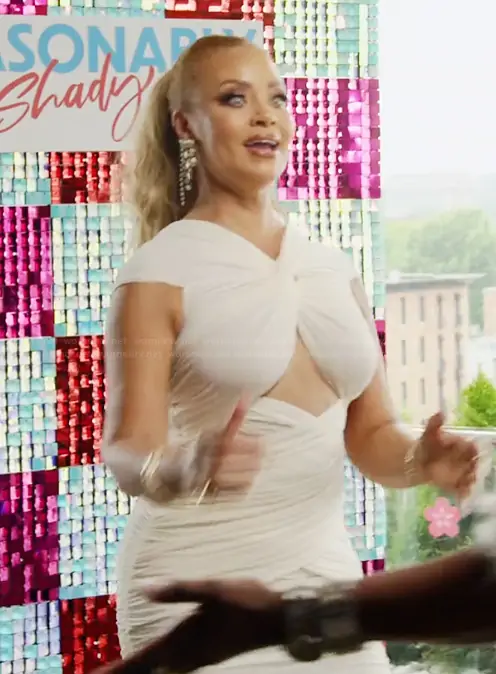 Gizelle Bryant on The Real Housewives of Potomac on Bravo was spotted wearing this white twisted cutout dress on The Real Housewives of Potomac on episode 'Pride and Pettiness' (10x08) in Nov 2025. Gizelle's Dress is the Nasha Twist-Front Cut-Out Maxi Dress by Ronny Kobo.