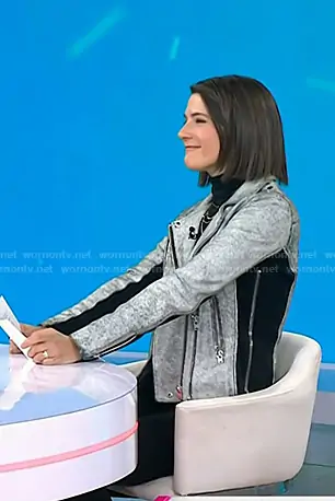 on Today on NBC was spotted wearing this metallic leather moto jacket on Today on Nov 24 2025's episode. 's Jacket is the Ilaria Ribbed Knit-paneled Cracked-leather Biker Jacket by Iro.