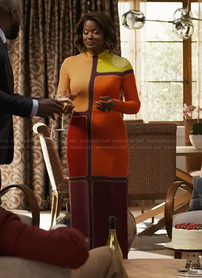 Vivian Banks (played by Cassandra Freeman) on Bel-Air on Peacock was spotted wearing this colorblock maxi dress on Bel-Air on episode 'The Maybes' (4x01) in Nov 2025. Viv's Dress is the Apollonis wool and cashmere maxi dress by Gabriela Hearst . Viv's Bag is the Melodie leather shoulder bag by Lanvin.
