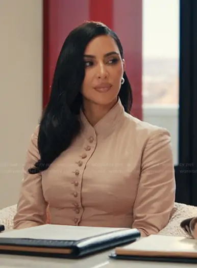 Allura Grant (played by Kim Kardashian) on Alls Fair on Hulu was spotted wearing this button front jacket on Alls Fair on episode 'This Is Me Trying' (1x05) in Nov 2025. Allura's Set is the 2002 Vintage Skirt Set by Alexander McQueen.