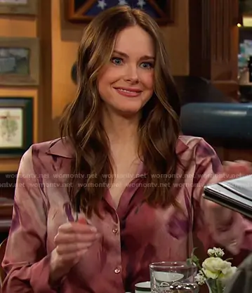Stephanie Johnson (played by Abigail Klein) on Days of our Lives on Peacock was spotted wearing this pink abstract print shirtdress on Days of our Lives on Nov 25 2025's episode. Stephanie's Dress is the Floral Satin Printed Midi Dress with Belt by Zara.