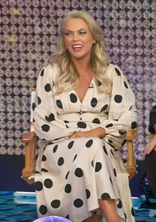 on Good Morning America on ABC was spotted wearing this whtie polka dot dress on Good Morning America on Nov 26 2025's episode. 's Dress is the Polka Dot Charmeuse Long Sleeve V Neck Midi Dress by Mac Duggal.