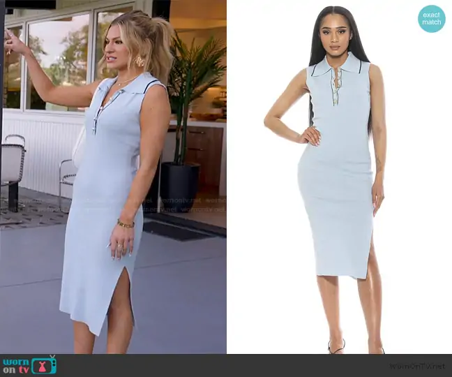 Fiona Belle (played by Fiona Belle) on Selling the OC on Netflix was spotted wearing this blue sleeveless dress on Selling the OC on episode 'Secrets, Sage and Sandcastle' (4x07) in Nov 2025. Fiona's Dress is the Myah Sleeveless Collared Midi Dress by Alexia Admor.