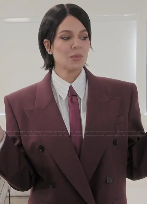 Khloe Kardashian (played by Khloe Kardashian) on The Kardashians on Hulu was spotted wearing this burgundy double breasted blazer on The Kardashians on episode 'If It Doesn’t Fit, We Must Acquit' (7x06) in Nov 2025. Khloe's Blazer is the Double-breasted wool blazer by Saint Laurent.