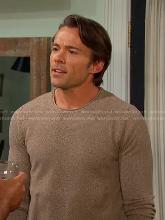 Philip Kiriakis (played by John-Paul Lavoisier) on Days of our Lives on Peacock was spotted wearing this brown knit sweater on Days of our Lives on Nov 29 2025's episode. 's Sweater is the Slhrocky Crew Neck Jumper by Selected Homme.