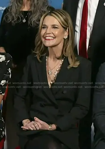 Savannah Guthrie on Today on NBC was spotted wearing this black tuxedo blazer dress on Today on Dec 02 2025's episode. Savannah's Dress is the Elianna Dress in Black by Veronica Beard.