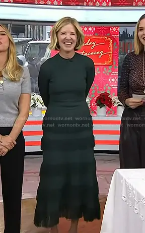 on Today on NBC was spotted wearing this green fringed dress on Today on Dec 04 2025's episode. 's Dress is the Fringe Detail Knit Piper Dress in Teal by Lela Rose.