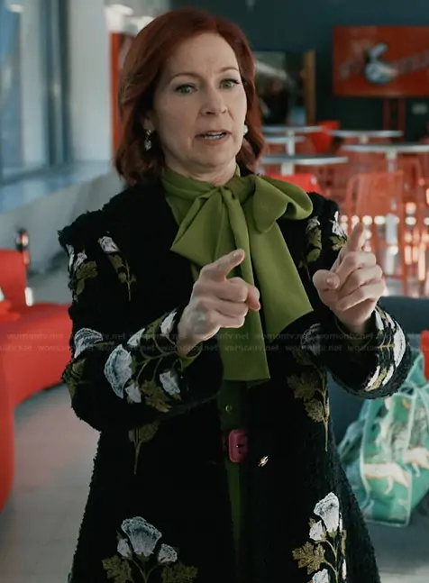 Elsbeth Tascioni (played by Carrie Preston) on Elsbeth on CBS was spotted wearing this black floral embroidered coat on Elsbeth on episode 'Basket Case' (3x08) in Dec 2025. Elsbeth's Coat is the Floral-Embroidered Tweed Bouclé Coat by Giambattista Valli.