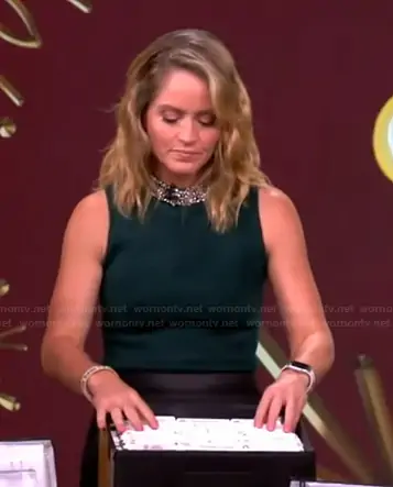Sara Haines on The View on ABC was spotted wearing this green embellished neck top on The View on Dec 05 2025's episode. Sara's Top is the Rema Halter Top by Simkhai.