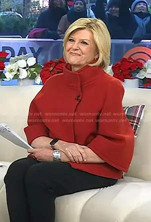 Anne Thompson on Today on NBC was spotted wearing this red cropped jacket on Today on Dec 05 2025's episode. Anne's Jacket is the Cropped Cape Jacket by Aquilano Rimondi.