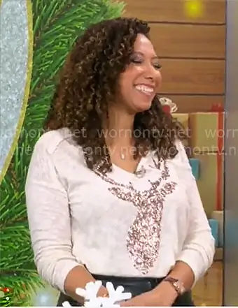 Gabrielle Kerr on CBS Mornings on CBS was spotted wearing this reindeer top on CBS Mornings on Dec 04 2025's episode. Gabrielle's Top is the Sequin Deer Top by Bethany Mota x Aeropostale .