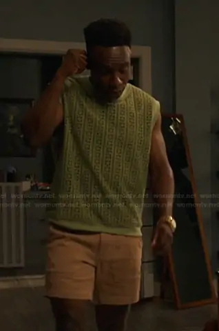 Carlton Banks (played by Olly Sholotan) on Bel-Air on Peacock was spotted wearing this green open knit vest on Bel-Air on episode 'Your Crown Is Waiting' (4x06) in Dec 2025. Carlton's Vest is the Noto Sweater Vest by Kardo.